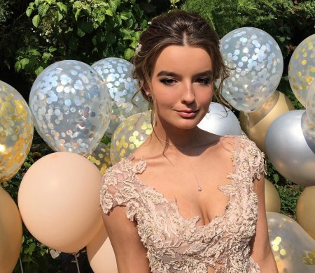 Минувшим вечером, переходящим в ночь, тысячи российских выпускников праздновали окончание школьной поры и вступление во взрослую жизнь. В числе счастливых молодых людей оказалась и 17-летняя Саша Стриженова. Приготовления к выпускному шли с самого утра, к девушке приезжал стилист, который сделал ей прическу и макияж. Для такого важного знакового события Саша Стриженова выбрала нежное платье молочно-кофейного оттенка с пышной юбкой. Пикантности наряду придали открытая спина и глубокое декольте, демонстрирующее красивую грудь юной Саши.