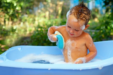 На море — полный штиль. Вода такая чистая, что без труда можно увидеть дно. Федино "море" легко уместилось в новенькую пластиковую ванную.