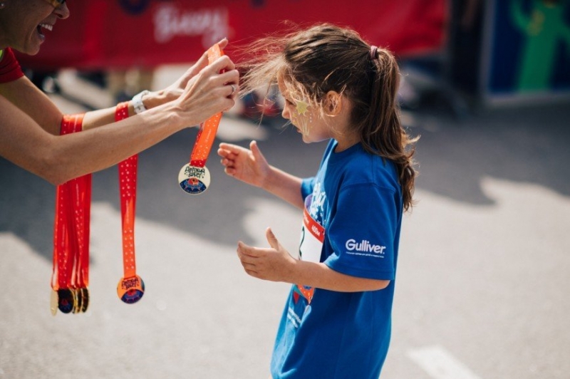 Принять участие в забеге смогут бегуны не старше 14 лет. Для того чтобы юные спортсмены соревновались друг с другом на равных, организаторы предусмотрели раздельные старты для детей разного возраста: группы до 5 лет, 6-7 лет, 8-9 лет смогут попробовать свои силы на дистанции 400 м, а группы старшего возраста — 10-11 лет и 12- 13 лет поборются на дистанции 800 м. Каждый участник детского забега получитподарки от организаторов – фирменную футболку и медаль, а также подарки от партнеров мероприятия.