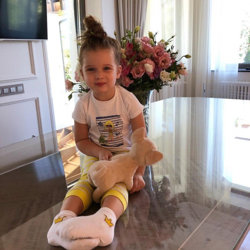 В ролике видно, как Теона в нетерпении прыгает возле мамы, которая всецело поглощена игрушечным малышом. И на повторяющиеся просьбы девочки отдать куклу Ксения Бородина просит свою дочь проявить терпение и позволить ей вдоволь повеселиться с игрушкой.