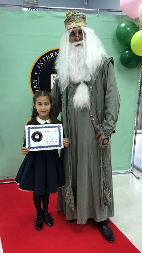 Посвящение было торжественным и интересным. Дети в квадратных академических шапках выступили перед родителями и учителями. А почетным гостем мероприятия стал мудрый волшебник Дамблдор, директор школы Чародейства и Волшебства «Хогвартс», из культового бестселлера «Гарри Поттер».