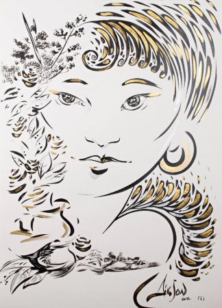— В графике, особенно в контурной графике, в которой я обычно рисую, необходим контраст. Мне нравится традиционная дальневосточная живопись и графика, а там черная тушь является классическим средством выражения. Однако даже рисуя в этой технике, я закрываю черные линии штрихами золотой или серебряной краски, уменьшая процент черного на листе бумаги. Когда в изображении преобладает черный в штрихах или размывке — оно кажется мрачным. Нужно соблюдать баланс темного и светлого в рисунке и учить этому ребенка.