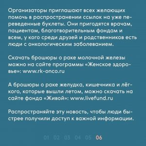 Пожалуйста, поделитесь этой новостью с другими. Брошюры пригодятся врачам, пациентам, благотворительным фондам и всем, у кого среди друзей и родственников есть люди с онкологическим заболеванием.