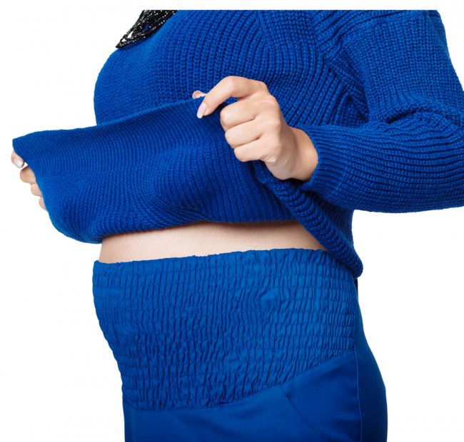 Главное, на что вам стоит обратить внимание — юбка должна быть с широкой резинкой на животике. При таком условии юбка сядет на вас “как влитая” и не будет спадать при ходьбе, что немаловажно во время беременности. Для зимнего образа отдайте предпочтение юбке из тонкой шерсти, в ней вы точно не замёрзнете.