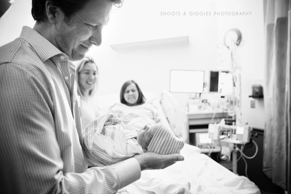 «Это отец впервые держит ребенка вместе с женой и суррогатной матерью на заднем плане».