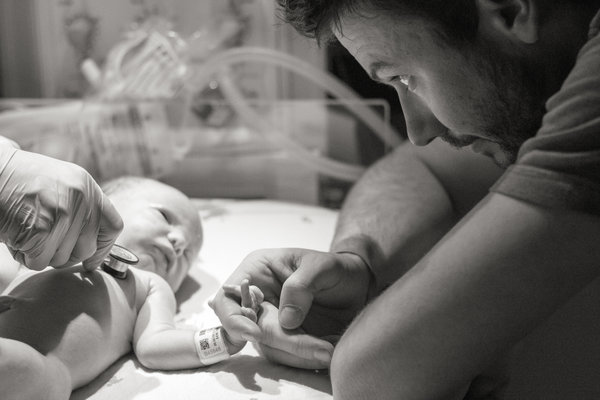 «Это фото близнецов, родившихся на неделю раньше запланированного Кесарева сечения. На них сразу надели кислородные маски, поскольку им нужна была помощь с дыханием, а отец все это время неотрывно смотрел на малышей!».