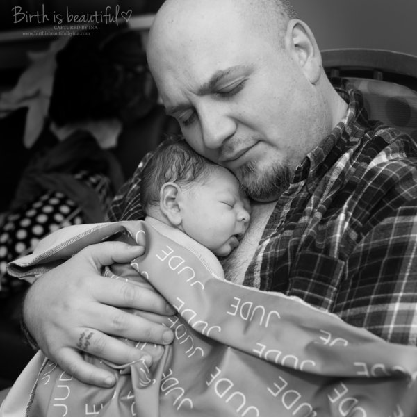 «Беременная жена и так и не появившаяся на свет дочь этого мужчины трагически погибли несколько лет назад. На его безымянном пальце вытатуированы их имена, что можно увидеть на фотографии. Это их сын Джуд. Первый контакт кожа-к-коже был очень эмоциональным».