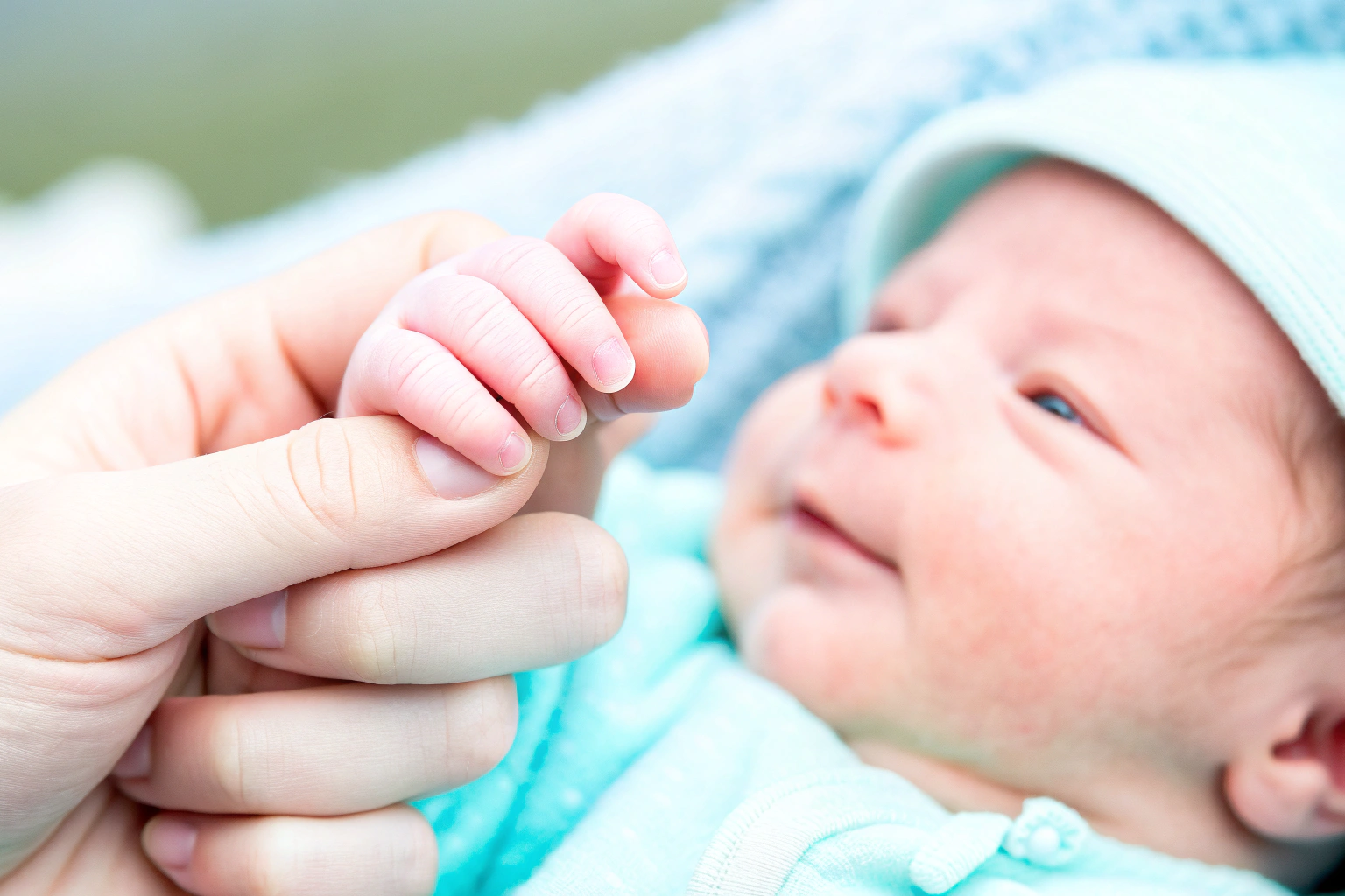 - Хватательный. Если прикоснуться к ручке малыша или вложить палец в его ладонь, он крепко сожмет пальцы.