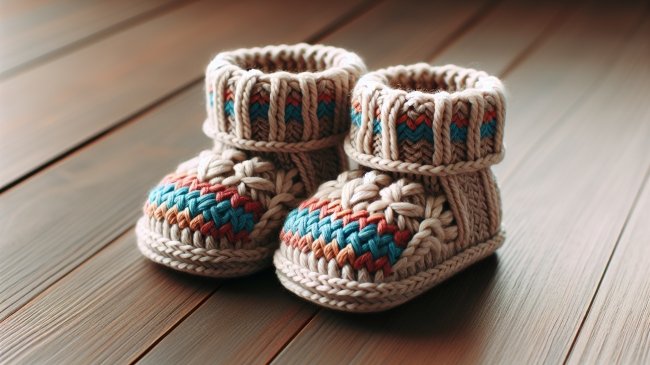 Маленькая вязаная обувь для малышей, сделанная из мягкой пряжи крючком или спицами. Выглядят они как носочки с различными узорами или украшениями.