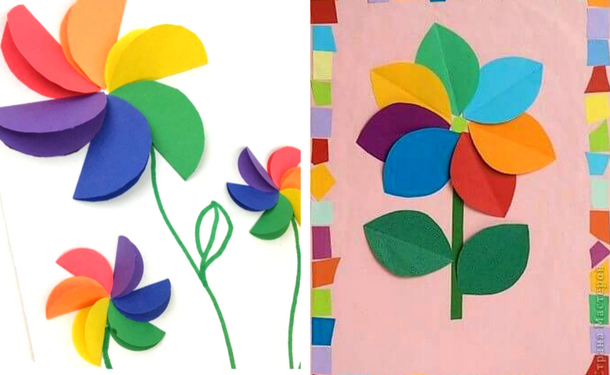 Чтобы сделать эту открытку на 8 Марта в подарок маме, не нужно обладать особыми навыками. С ней справится даже ребенок. Вырезаем из цветной бумаги лепестки и клеим их на картон.
