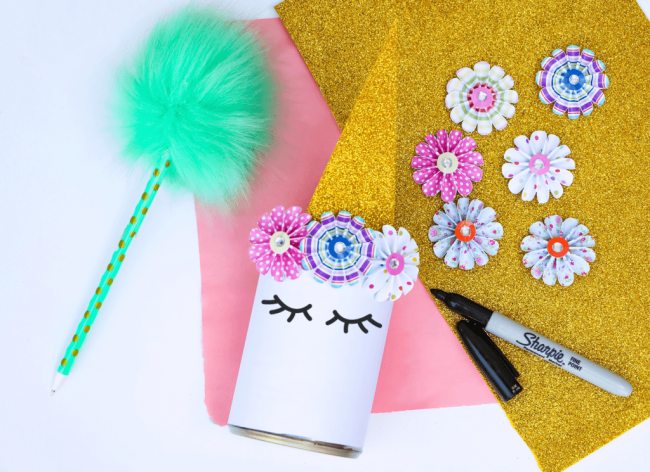 В виде единорога можно даже оформить подставку для канцелярии. Да-да! И тогда все красиво украшенные школьные принадлежности обретут волшебную подставку, а на столе воцарится полный порядок.
