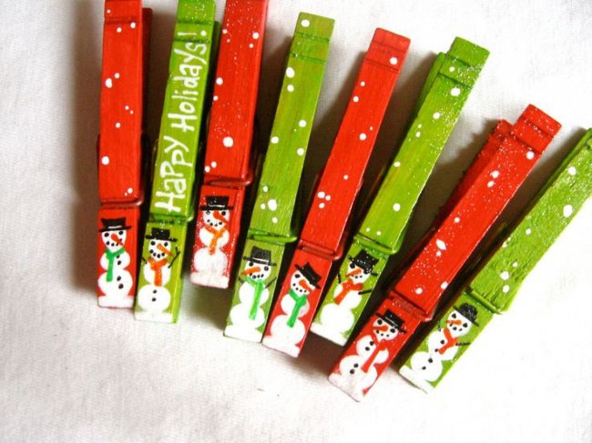 Теперь вы знаете, что даже из обычных бельевых деревянных прищепок можно сделать замечательные елочные игрушки и новогодние украшения для детей. А главное, ваш ребенок может сделать такие поделки своими руками!