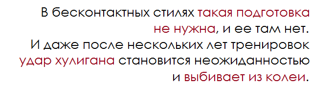 На тренировке по бесконтактному стилю удары полную силу не наносят. В лучшем случае их обозначают легким касанием.