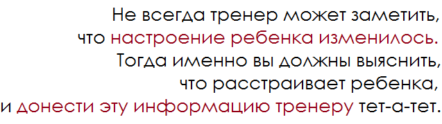 Тренер в зале постоянно напоминает об этом ученикам. Но за пределами зала поведение ребенка контролируют родители, и обязательно поддерживают обратную связь с тренером. Не перекладывайте всю ответственность на тренера.