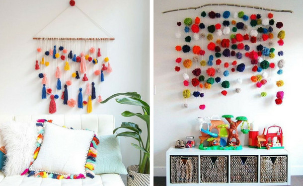 Мы уже рассказывали, как делать помпоны, и какие поделки подростки могут мастерить из них. Сейчас мы предлагаем сделать своими руками несложные украшения на стену из помпонов для комнаты подростка.