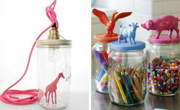 Что еще можно сделать своими руками для комнаты подростка из старых игрушек, кроме вазона для цветов? У нас море идей, например, оригинальную лампу, стильную крышку для банок, в которых можно хранить канцтовары, подставки для книг, ручки для тумбочек или держатели на вешалке. Кроме самих игрушек понадобятся нож, клеевой пистолет и краска.