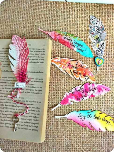 Бумажная закладка в виде пера с акварельным узором и любимой цитатой или вдохновляющей фразой — что может воодушевлять еще сильнее на новые подвиги и покорение новых вершин?