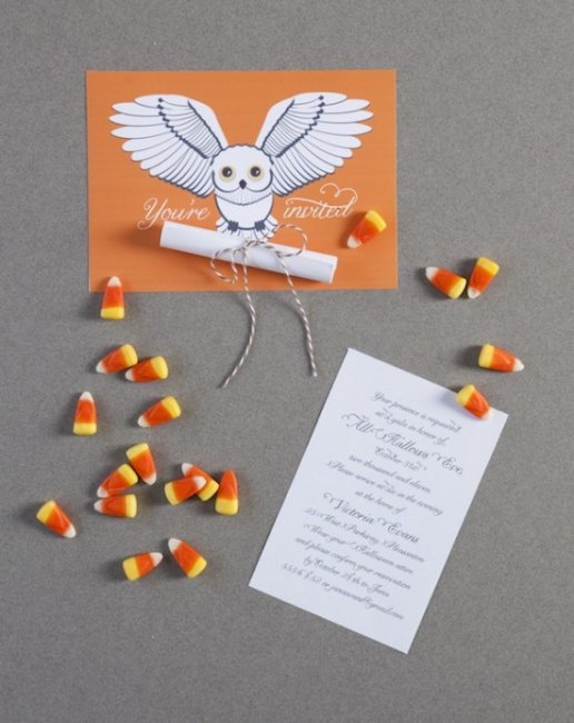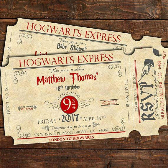 Пригласительные можно оформить в виде билета на поезд Хогвартс Экспресс, единственный вид транспорта, доставляющий к тайной школе, или в виде письма о зачислении на первый курс в школу магии, которые приносят совы.