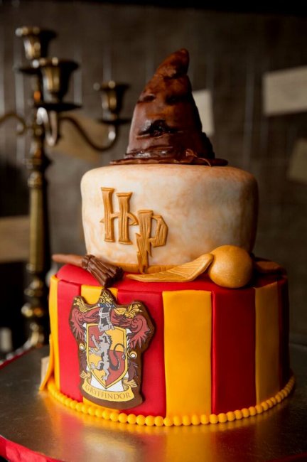 Именинный торт. Главный атрибут детского дня рождения в стиле Гарри Поттера, конечно же, торт, который должен обязательно быть оформлен в общей тематике праздника с фигурками персонажей или элементами из мира магии.