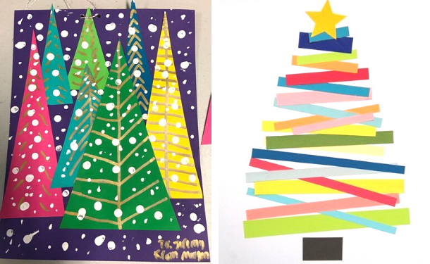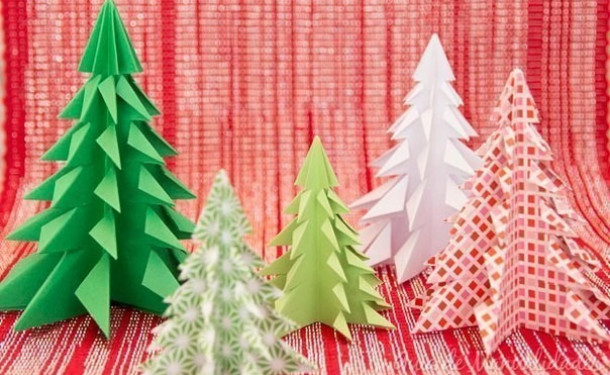 Об'ємні ялинки з кольорового паперу - виріб для дітей