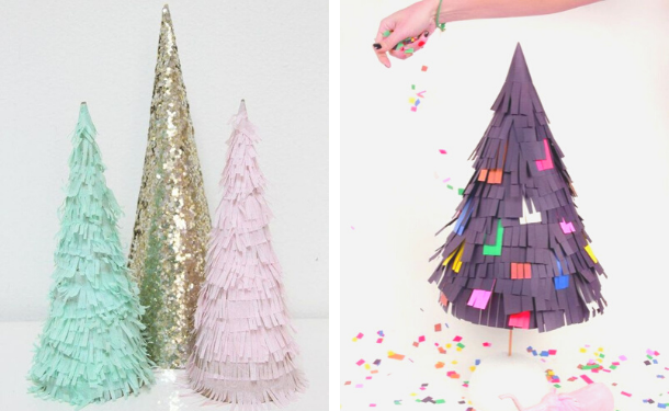 Ця саморобка підійде для дітей будь-якого віку. Зробіть конус з картону. І потім запропонуйте дітям прикрасити його. Для прикраси можна використовувати, що завгодно: вирізані кола або бахрому з кольорового паперу, блисківки.