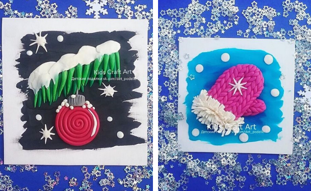 Можна зробити як картини з пластиліну, так і звичні фігурки. Як робити ялинку, Діда Мороза і Снігуроньку, дивіться в нашій статті "Вироби з пластиліну на Новий рік".