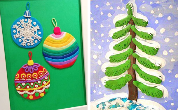 Можно сделать как картины из пластилина, так и привычные фигурки. Как делать елочку, Деда Мороза и Снегурочку, смотрите в нашей статье "Поделки из пластилина на Новый год".