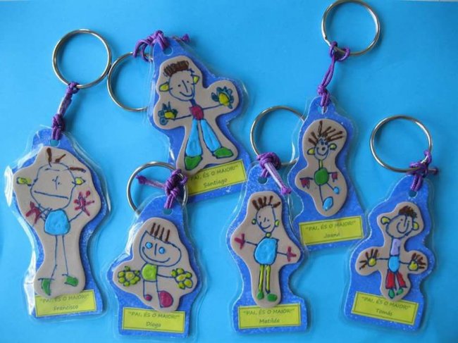 Все очень просто: ребенок рисует рисунок, вы его ламинируете, вырезаете по контуру, и цепляете к кольцу для ключей.