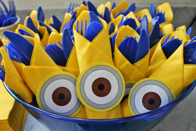 Практически все в доме можно превратить в миньонов: салфетки, тарелки, стаканы для напитков, воздушные шарики, печенье, торты и любые другие снеки для детей. Главное — побольше и чаще сочетать желтый и синий цвета. В оформлении праздника, кроме миньонов, могут также быть и другие персонажи мультфильма "Гадкий Я".