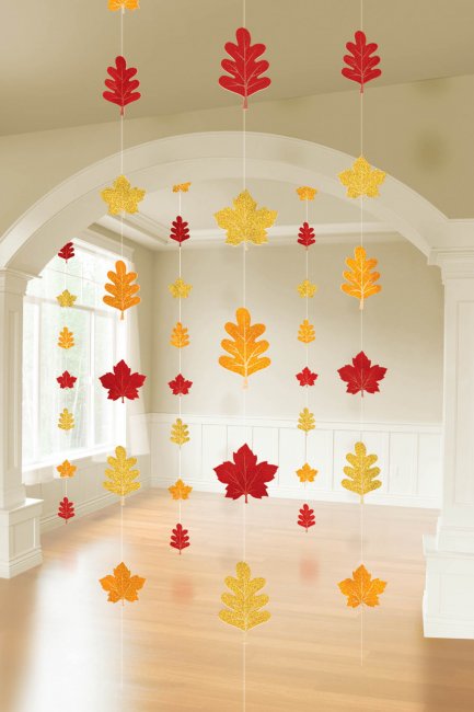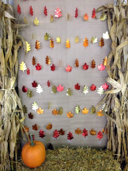 И, кстати, о стенах. Они ведь тоже требуют украшений. Если повесить осенние гирлянды в детском саду вертикально, получится отличная фотозона, где каждый желающий сможет сделать фото после праздника осени. Да и это просто очень красиво!