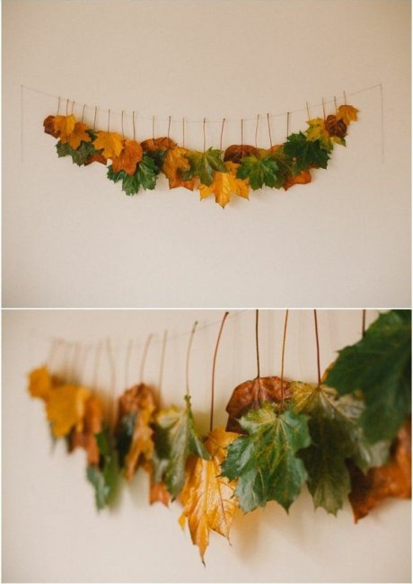 Гирлянды для осеннего праздника из листьев и других природных материалов