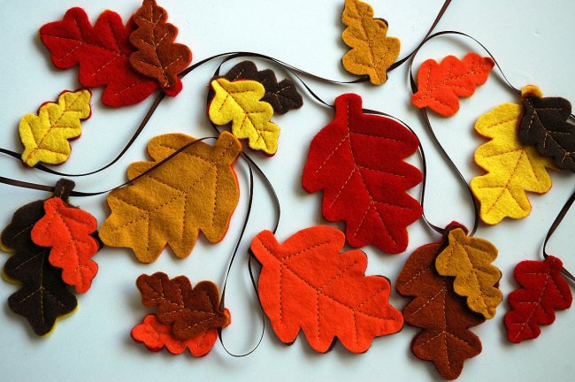 Хотите сделать осенние гирлянды не на один год? Тогда выбирайте фетр, как материал для своих поделок. Подобные украшения из фетра для детского садика будут долго храниться и прослужат еще не одному поколению детсадовцев.