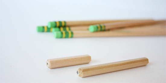 Делаем порожки для гитары из карандашей. Для этого отрезаем от карандаша две части: 4 и 7 см.