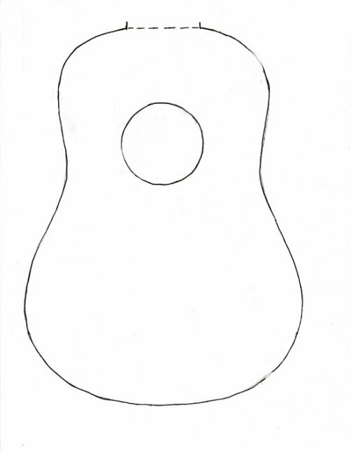 Распечатайте или нарисуйте шаблон для игрушечной гитары на бумаге. Вырежьте его.