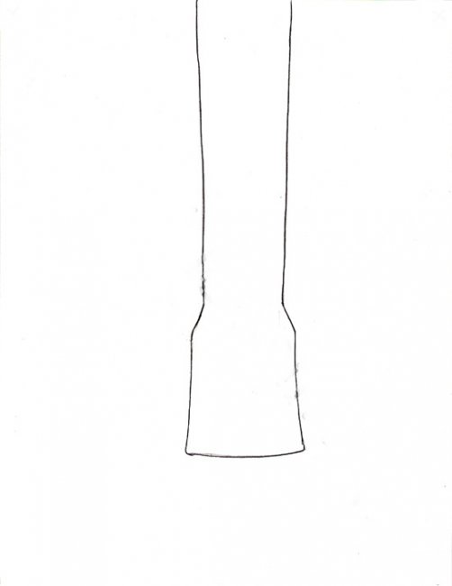 Отмечаем на деке место для порожка и струн на лицевой стороне гитары, отступив от нижнего края круга, 2,5 см чертим по ценру линию 7 см. Затем точками отмечаем места выхода струн: