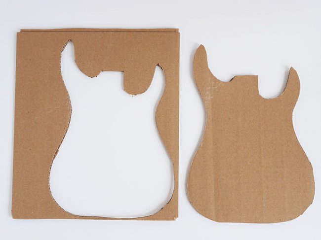 Вырежьте детали для гитары из картона. Всего должно получиться пять элементов.