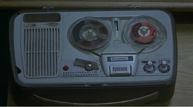 Время события — 1982 год. Советский портативный магнитофон что-то пробует нам сказать.