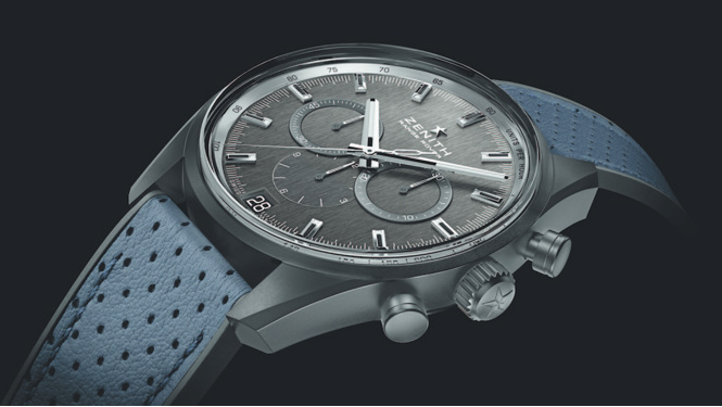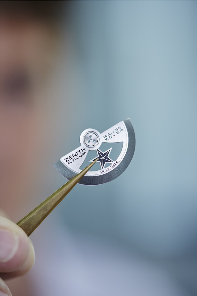 Матовый серый циферблат часов содержит посвящение «Zenith Range Rover». На его стрелки и часовые отметки нанесены родиевое и люминесцентные покрытия. Отдавая дань гениальному механизму 1969 года, хронограф El Primero Range Rover оснащен узнаваемым скругленным дизайном.