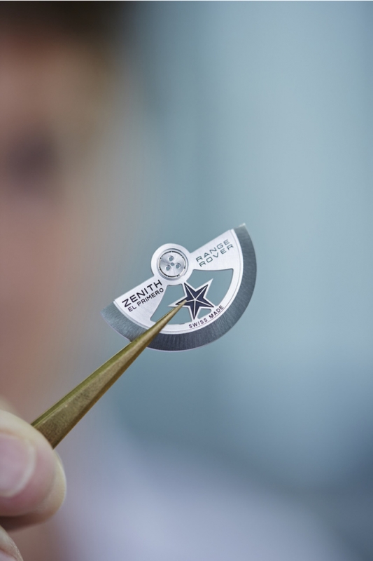 Его высокочастотный механизм El Primero 400B установлен в корпус диаметром 42 мм. Корпус изготовлен из черного матового керамизированного алюминия, как и алюминиевое шасси автомобиля Range Rover. Под задней крышкой из сапфирового стекла – памятная гравировка «El Primero Range Rover / Special Edition» и логотипы Zenith и Range Rover на роторе подзавода.