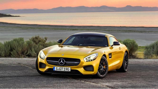 Это суперкар Mercedes-AMG GT S. Злой, но не жадный: поделился с кроссоверами GLC двигателями