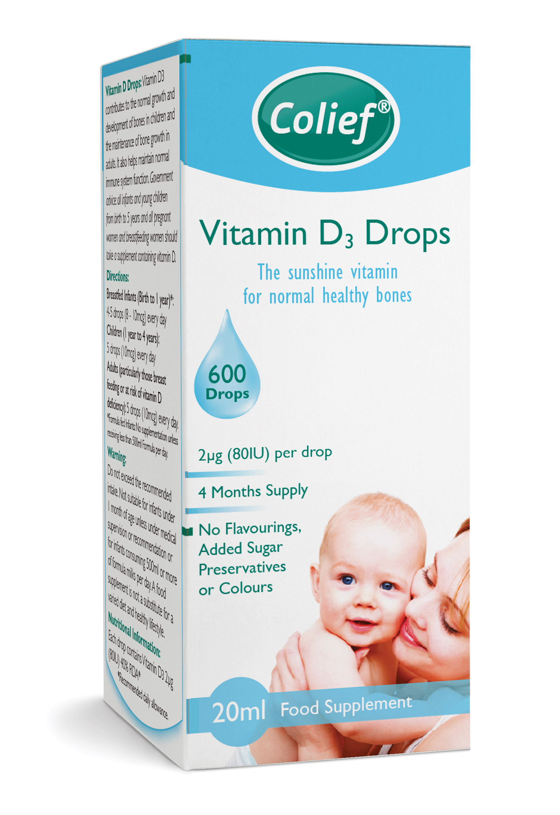 Но, если, например, по медицинским показаниям ребенок оказывается на искусственном или смешанном вскармливании, его можно поддержать пробиотиками, и обязательно витамином Д, либо в комбинированном виде с пробиотиками, либо отдельно, например, с таким препаратом как «Колиф витамин Д3 в каплях».
