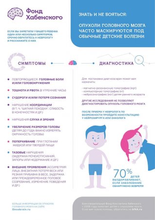 С 20 по 27 октября проходит Всемирная неделя осведомленности об опухолях мозга. Многие родители боятся этого диагноза, потому что с ним до сих пор связано много мифов, большинство из которых не соответствуют реальности. Вместе с врачами-экспертами Благотворительного Фонда Константина Хабенского рассказываем,что действительно нужно знать родителям, чтобы не упустить момент и вовремя диагностировать болезнь у ребенка.