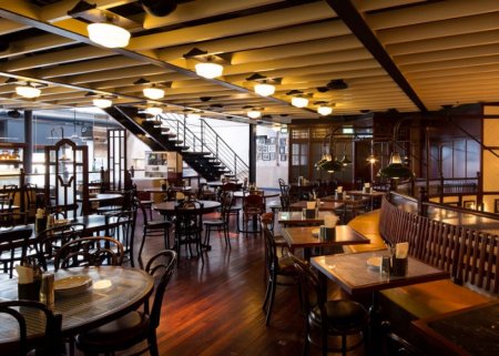 Дизайн этого глобального интерьера был разработан британской строительной студией «Macaulay Sinclair». Пространство помещения было разбито на ряд уровней, а общественная площадь составила наиболее 830 квадратных метров, где разместилось около 250 столов для сервировки.