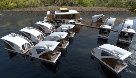 Для любителей отдыха на воде как нельзя лучше подойдет отель-катамаран. Его разработкой занимается сербская дизайн-студия. Плавучие номера станут частью программы по развитию речного туризма страны. Гости смогут наслаждаться красотами природы, не нарушая при этом ее целостности.