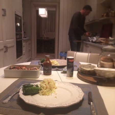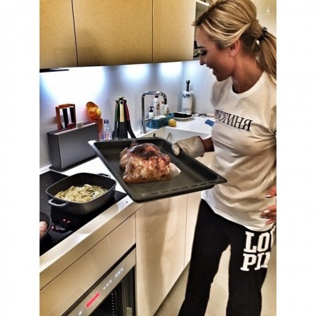 В отличие от брутальной кухни Водонаевой кухня Ольги Бузовой оформлена в светлых тонах. И Ольга время от времени на ней готовит: к приезду мужа-футболиста с игры или сборов она всегда старается накрыть стол в лучшем виде. «А ночную готовку никто не отменял: щавелевый суп, жареная картошка, котлетки, курочка, крабовый салат готовы. На подходе мясной пирог! Все для тебя, @tarasov23» — так подписала Бузова одну из своих «кухонных» .