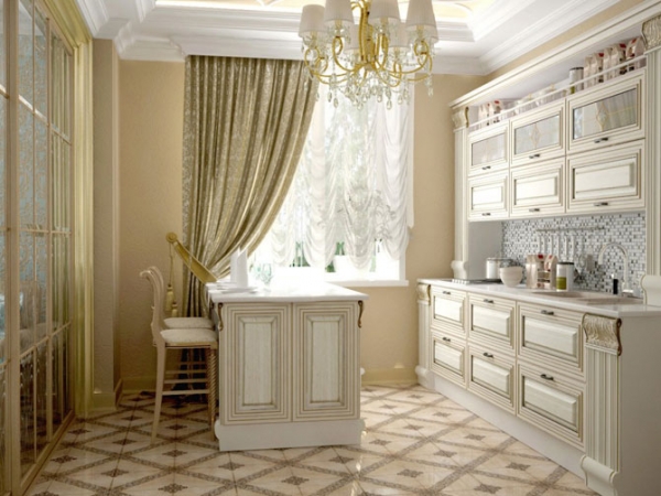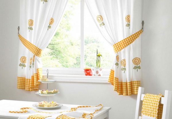 Чаще всего для кухни приобретаются светлые шторы, позволяющие обеспечить доступ солнечным лучам, поскольку именно кухня является местом скопления жизненной энергии. Здесь никогда не получится расслабиться и отдохнуть. Гораздо реже приобретаются тёмные шторы, например, шторы с ламбрекенами или римские шторы, так как только они могут пропускать лучи солнца. Что касается обрамления окна, то оно полностью зависит от предпочтений владельца дома.