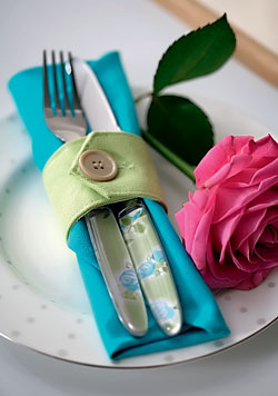 Затяните пояс. Симпатичные кольца для салфеток можно сделать из старого пояса от платья. Нарежьте полоски длиной 20 см, обметайте срезы, чтобы они выглядели аккуратными. Пришейте с одного конца пуговицу, а в другом сделайте отверстие для нее.