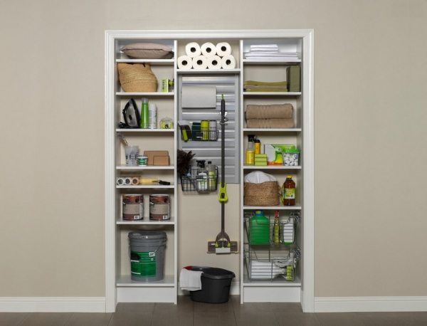 Именно на стадии ремонта следует продумать, где вы собираетесь хранить швабру, ручку от пылесоса и прочий габаритный инвентарь. Вы не из тех, кому повезло иметь в квартире кладовую? Тогда смонтируйте в шкафу вертикальный выдвижной ящик: туда поместятся и пылесос, и флаконы с бытовой химией, если вы предусмотрите для нее подвесные полки.