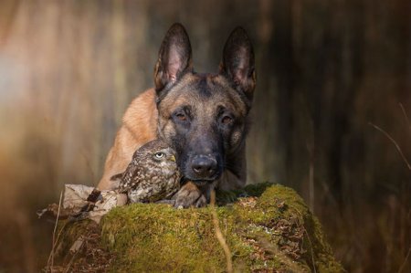 Интернете можнож отыскать много трогательных фото, иллюстрирующих «дружбу» разных животных. Чаще всего, окончательно, общий язык обретают семейные кошки и собаки, которые вопреки общепринятому воззрению, совершенно хорошо ладят. Эта германская художница и фотограф проиллюстрировала невозможную историю взаимоотношений совы и собаки.