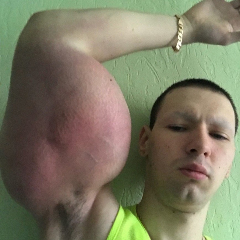 Кирилл Терешин признался, что с ним происходит что-то непонятное: одна его рука увеличилась в размерах и покраснела, а температура его тела поднялась до 38,5. При этом к врачам парень обращаться пока не собирается. Он знает, что тогда придется расстаться со своими «базуками».Кирилл показал в Инстаграме, как выглядят его руки сейчас и это, мягко говоря, устрашающее зрелище. Ему уже звонят с телевидения с предложениями обеспечить медицинскую помощь, но он собирается ждать три недели. И только тогда, если ему не станет легче, он готов избавиться от своих ненормально больших рук.